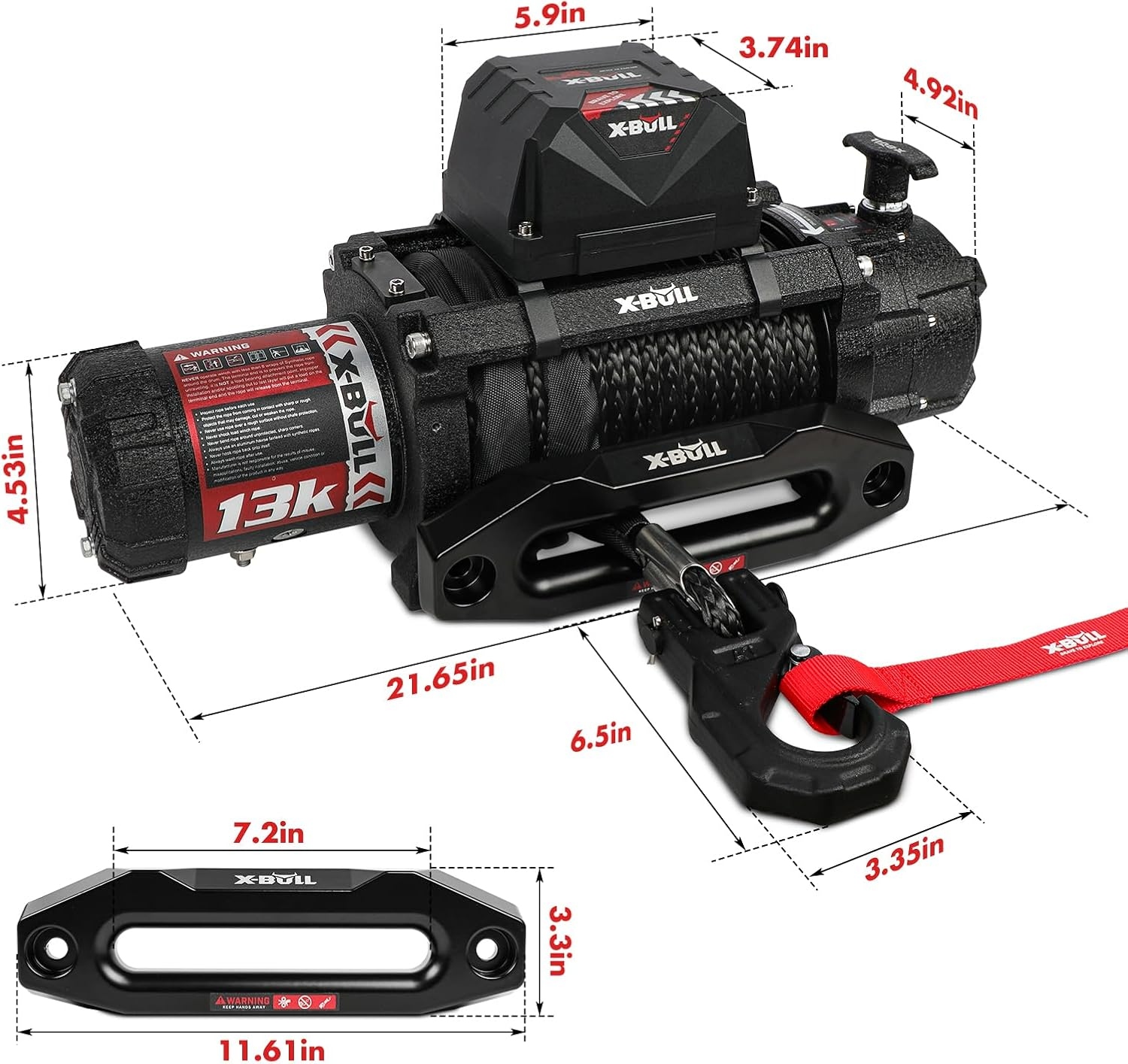 WYCIĄGARKA SAMOCHODOWA ELEKTRYCZNA 6TON 12V X-BULL WINCH 13000 LBS GAMMA LINA SYNTETYCZNA OFF-ROAD 4X4